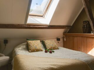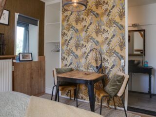 Geniet van een ruim bed (160×200 cm) en een gezellig zitje, perfect voor ontspanning. U heeft uw eigen douche en toilet ensuite, wat zorgt voor extra privacy en comfort.